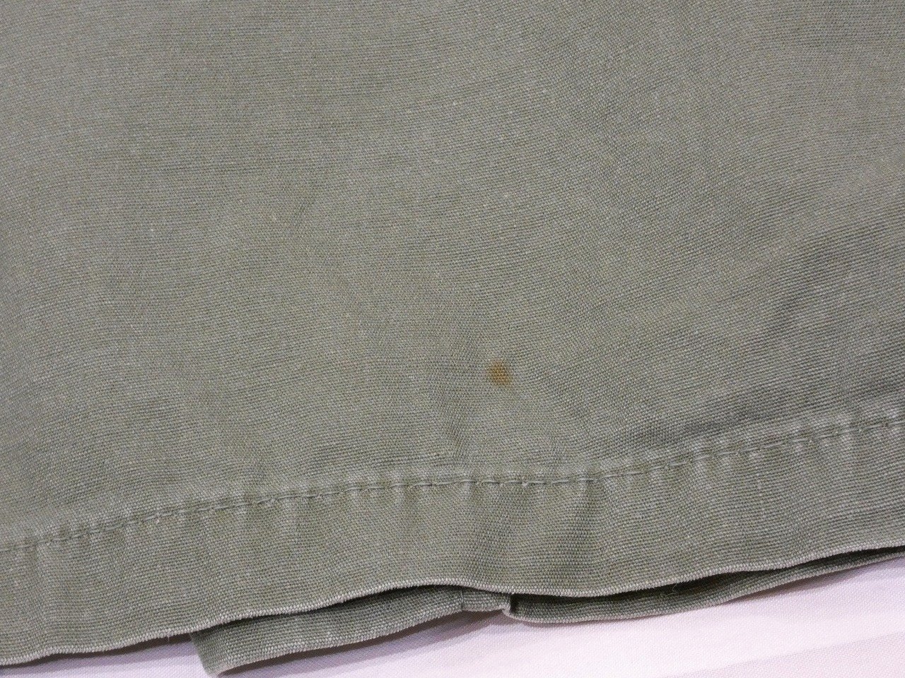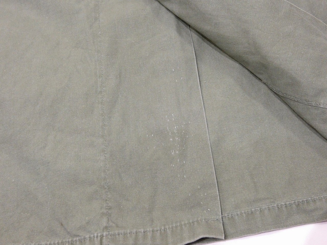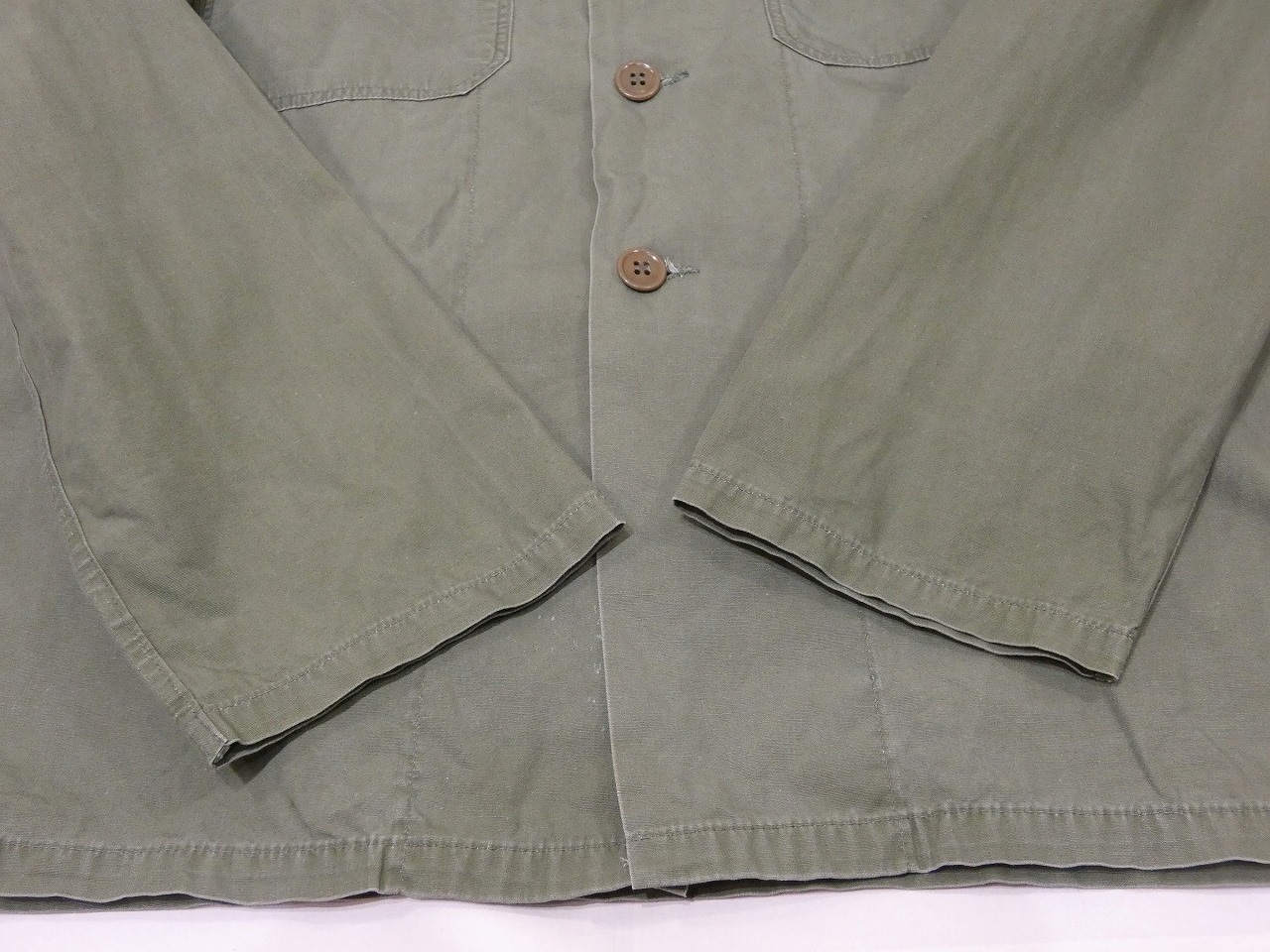 コンディションは多少の使用感があり、襟やフロント合わせ部分に小キズ、第1ボタン交換と左ポケットボタン縫い直し、背中の下部にシミなども見られますが、状態は良好です。
