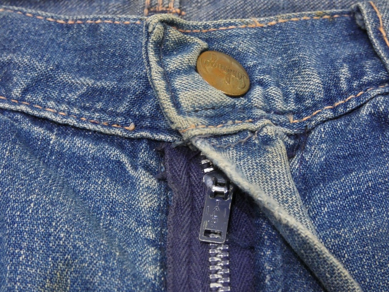 タグなどはありませんが、SanforizedボタンからBLUE BELL社の1本で間違いないと思います。BLUE BELLは1904年にハドソン オーバーオール カンパニーとして創業し、1919年代にはブルーベル オーバーオール カンパニーに名称変更しています。現在ではラングラーでお馴染みのブランドですね。そんなこちらは、ダメージやヨゴレは見られますが、ペインターでは比較的珍しい綺麗なヒゲ落ちした1本です。オンスは恐らく10oz程度かと思います。こちらの様な雰囲気やサイズの良いぺインターはアメリカ本国でも大変人気が高く価格も上昇しています。お探しだった方は是非、ご検討下さい。