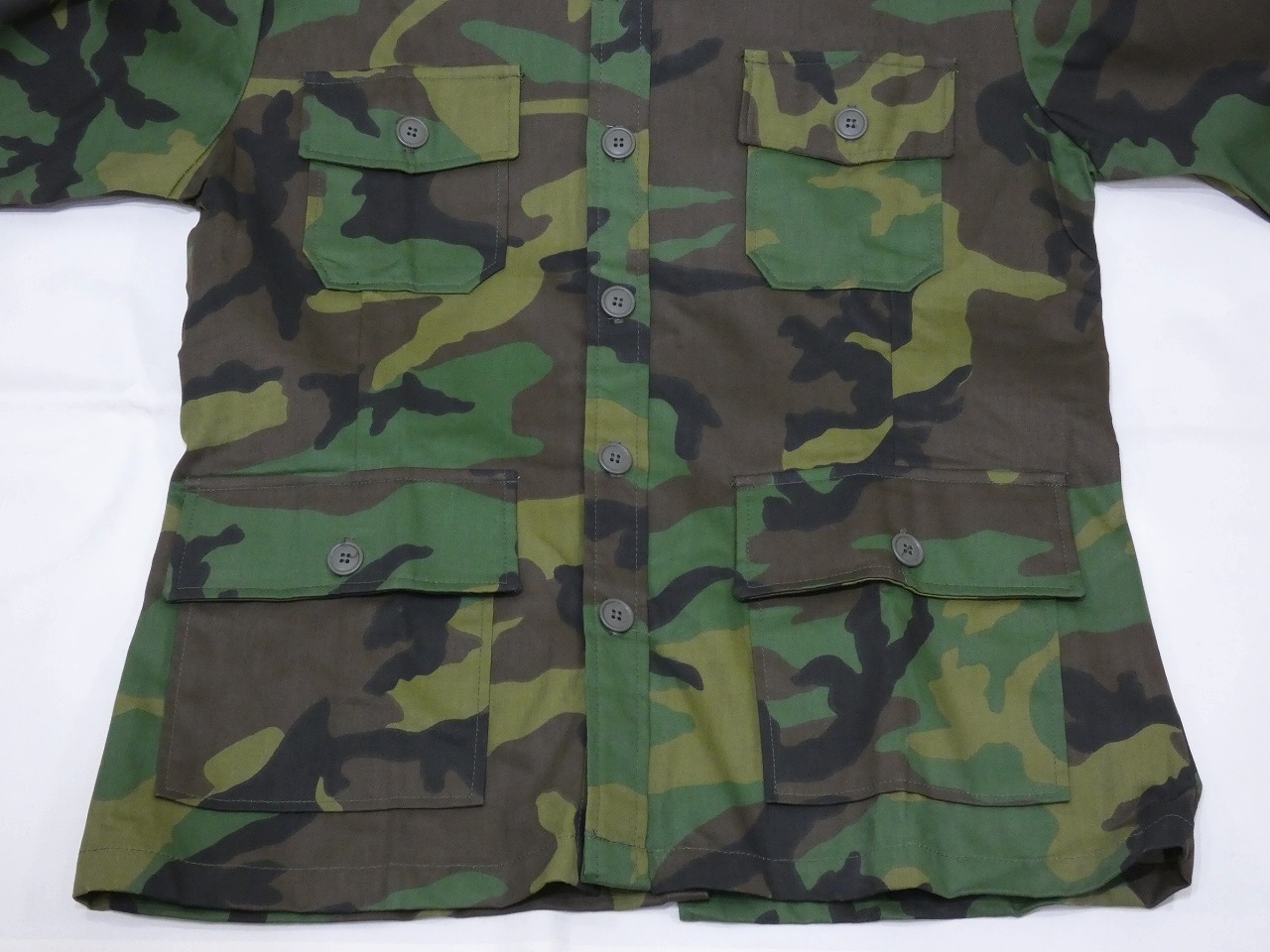 Champion's Choiceの詳細は不明ですが、シューティンギアを取り扱うメーカーの様ですので、こちらのジャケットもシューティングジャケットかと思われます。生地にコットンのウッドランドカモを使用しており、フロントは四つの大きなパッチポケット、バックはピンチバックのセンターベント仕様です。希少なDEAD STOCKになりますので、お探しだった方は是非、ご検討下さい。