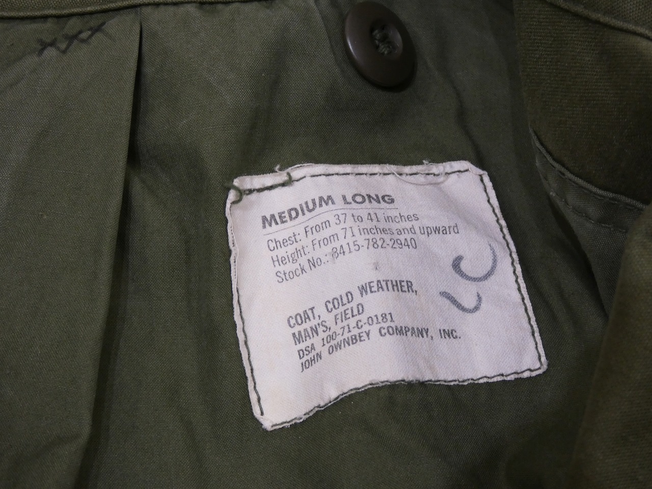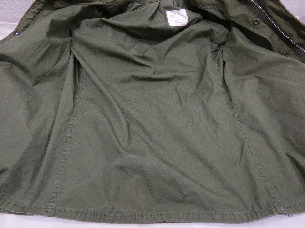 コントラクターはJOHN OWNBEY CO Incで、製造年は71年です。ショルダーにはエポレットが付き、ジッパーはアルミジップ、袖は三角のマチが省略された2ndモデルの最終モデルになります。アメリカ軍のミリタリーウエアの中でも傑作の1つと言われるモデルで、数多くのメーカーがサンプリングしており、映画などでも度々登場しています。TAXI DRIVERのロバート デニーロが着用したのもこの2ndモデルです。そんな2ndモデルの状態の良い物は大変希少です。数年前までは安価で見つけることも可能だったアイテムですが、アメリカ本国でも価格の上昇が著しく、買付けが難しくなっております。サイズもMEDIUM-LONGで、最近需要の高いサイズだと思います。お探しだった方は是非、ご検討下さい。
