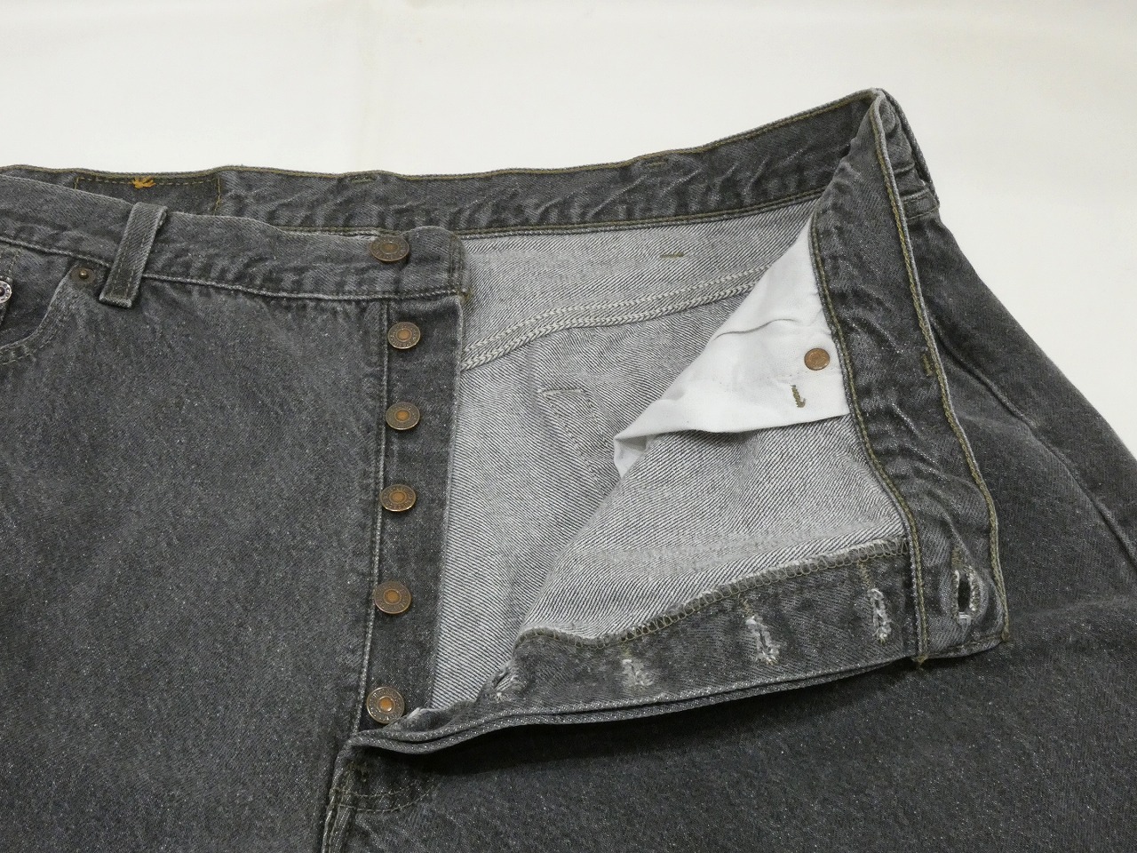 こちらは、90年代のアメリカ製 リーバイス 501 先染め ブラック デニム パンツになります。
