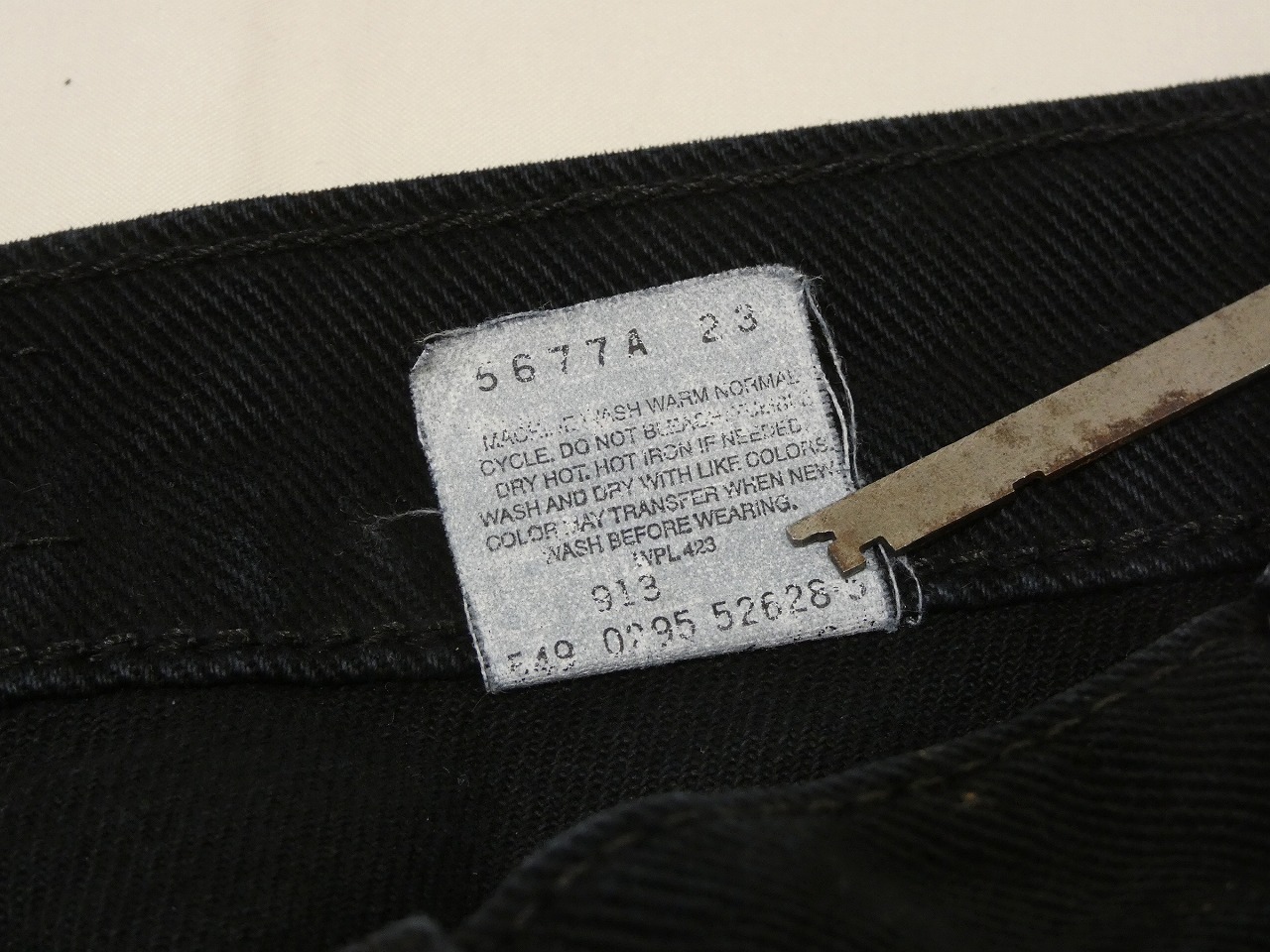 お探しの方も多いLOOSE FITの1本で製造は95年2月です。タブは10本に1本や100に1本とも言われるブランクタブ(サークルRタブ)になります。最近では見かけることも少なくなってきた貴重なUSA製の1本です。ウエストはやや大きめですが絞って穿くとさらに太さが強調されるかと思います。お探しだった方は是非、ご検討下さい。