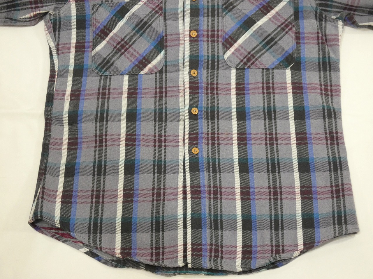 BIG MACはJC Penneyのストア ブランドの1つで、主にワークウエアを手掛けており日本でも馴染みのあるブランドですね。そんなこちらは、グレーベースにチャーコールグレーやブルー、ホワイト、ボルドーの入った良いカラーリングの1枚です。意外に探すと少ないUSA製の大き目サイズになります。縮みや状態の悪い物が多いヘビーネルですので、お探しだった方は是非、ご検討下さい。