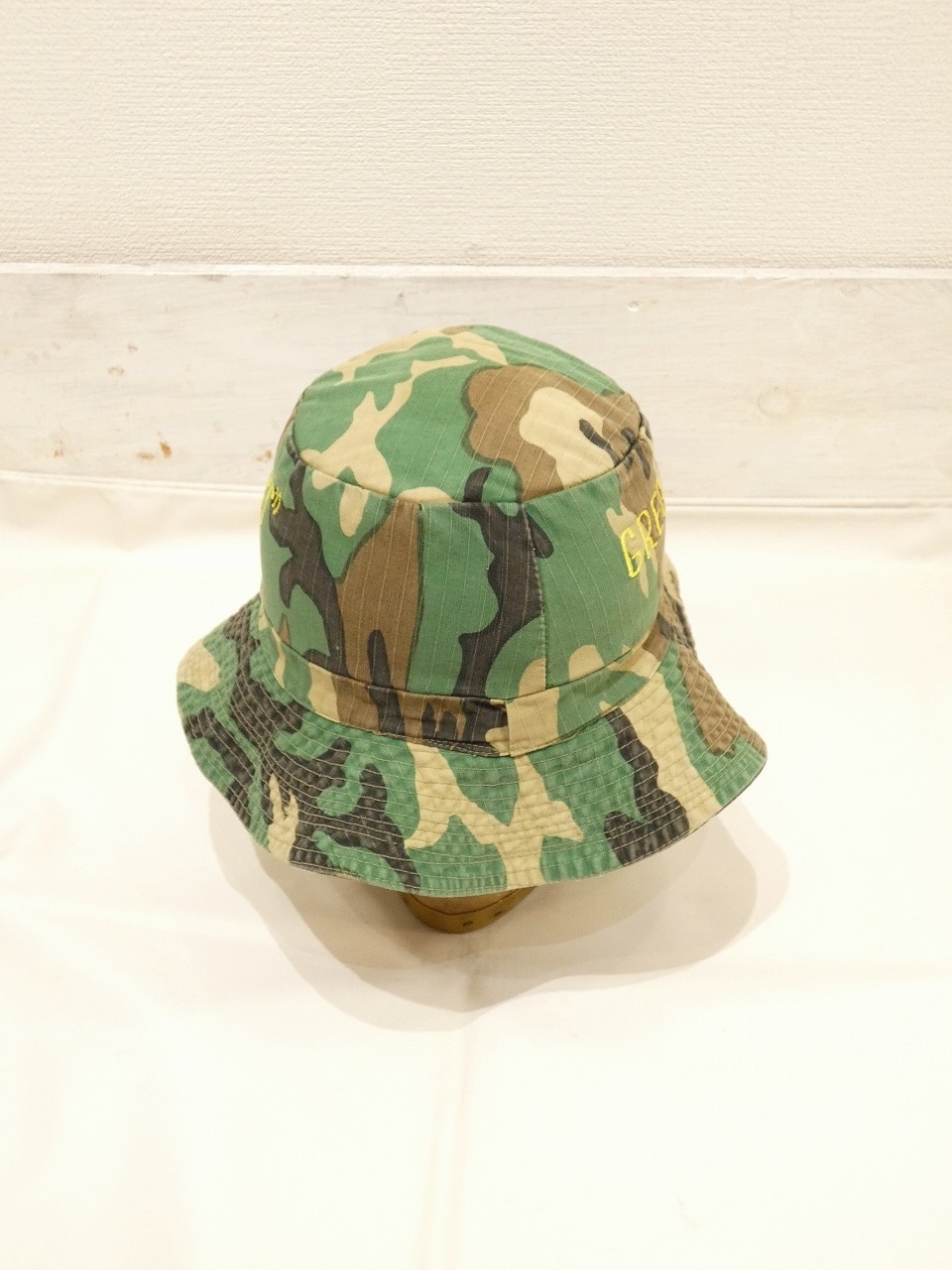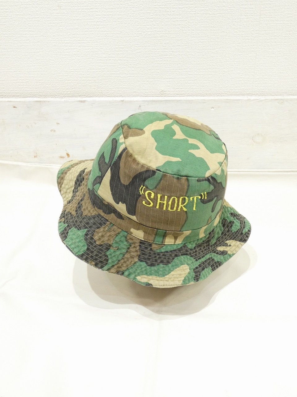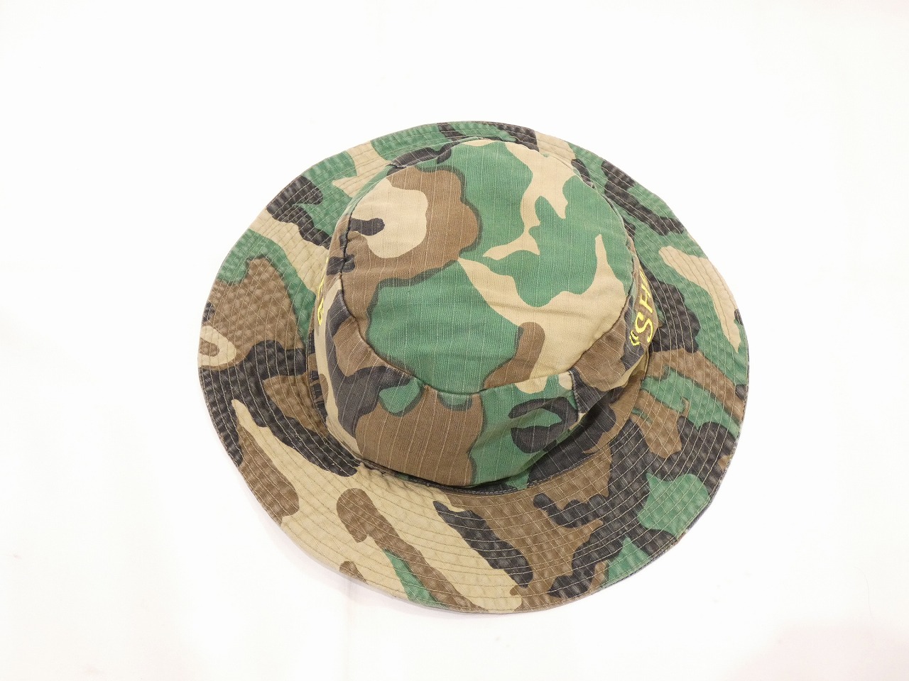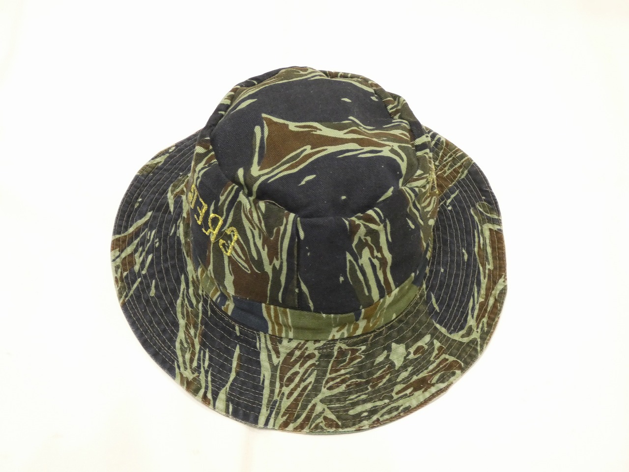 恐らくは、ARVN(南ベトナム軍)の軍事顧問(アドバイザー)の方が使用していた物かと思われます。ローカルメイドのブーニーハットで、表はリップストップのブラウンリーフカモ、裏側はTDS(タッドポールスパースパターン)通称シルバータイガーと呼ばれるタイガーストライプのリバーシブルになっています。両サイドにはGREG(GREGORY?)と‟SHORT”の刺繡も入っています。リバーシブルの物はとても珍しいと思います。わりと被れる方の多いサイズ感かと思いますので、お探しだった方は是非、ご検討下さい。