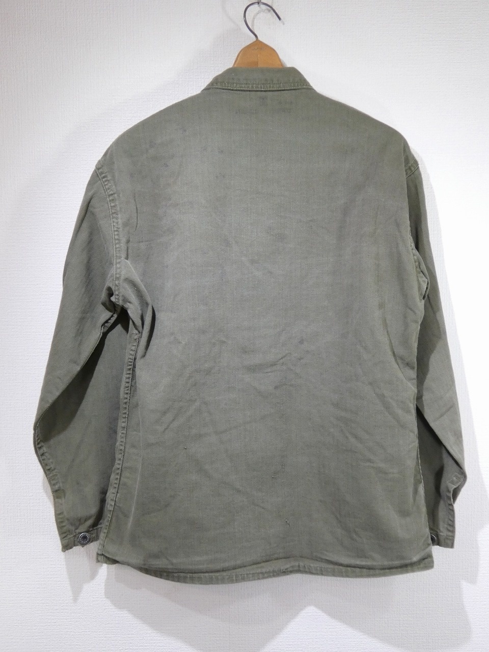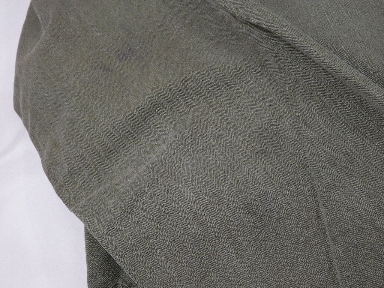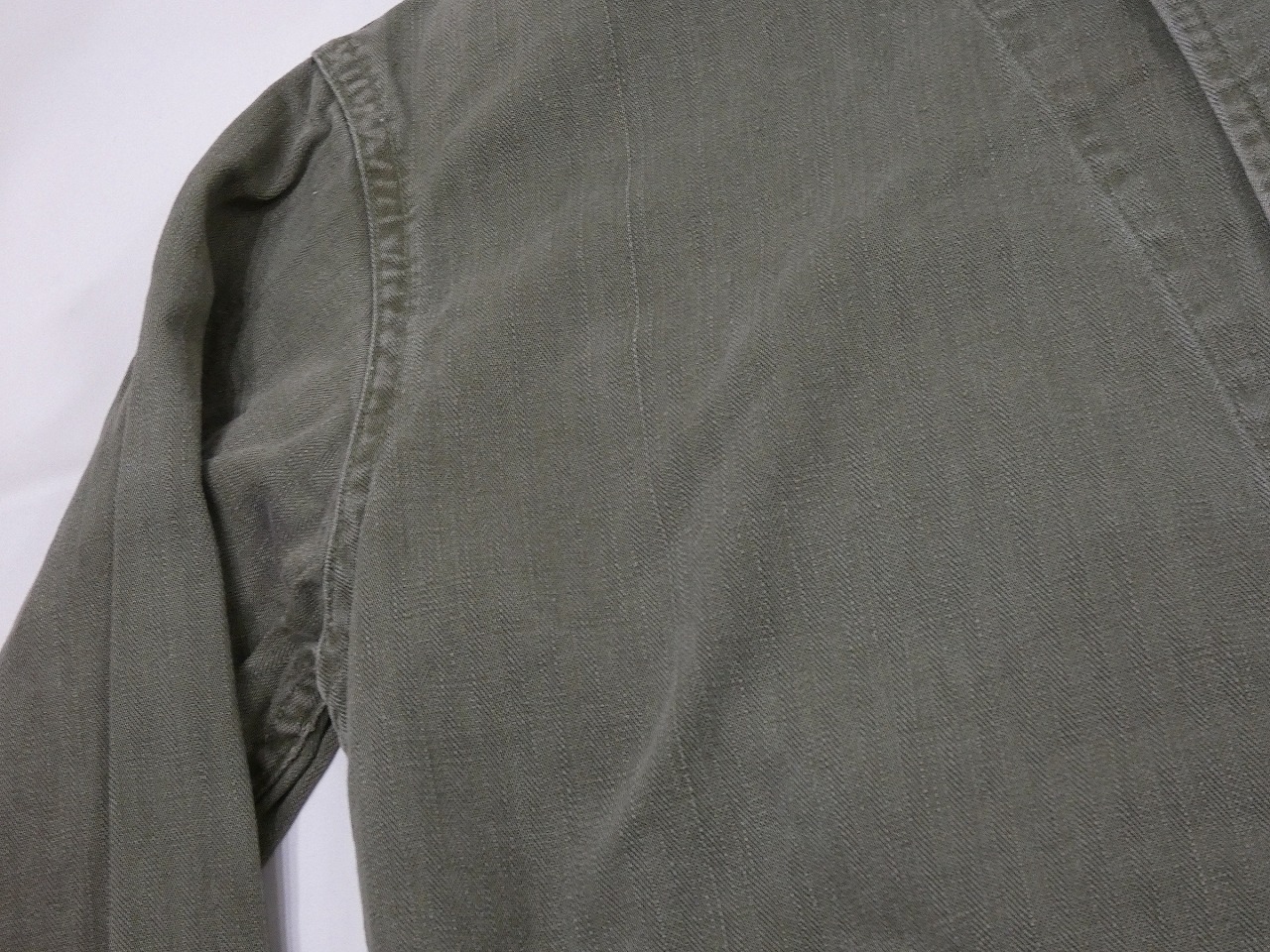 コンディションは、あまり使用感は感じずボタンホールもきつめですが、袖や背中などに薄いヨゴレや織りムラが見られます。