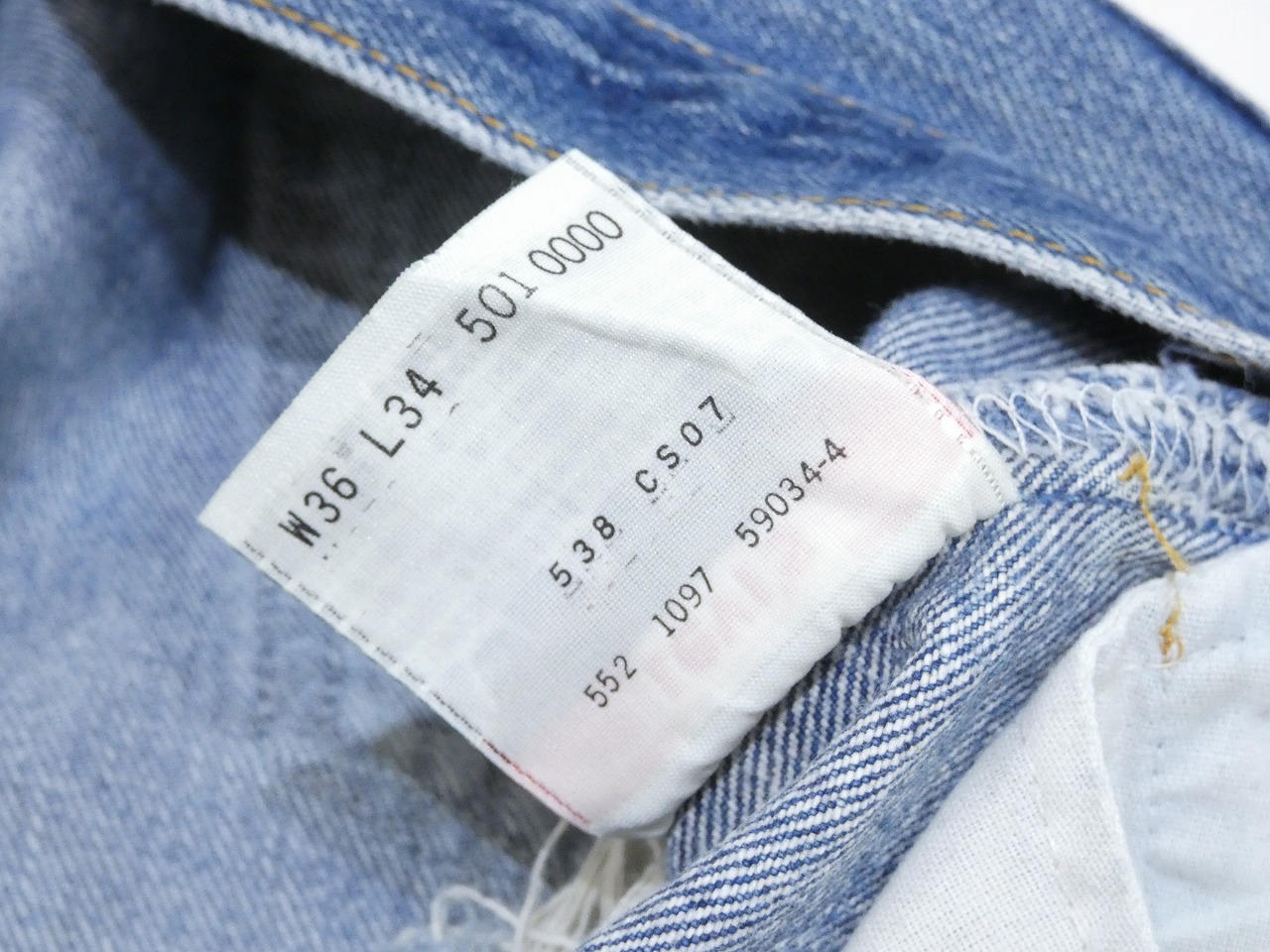 製造年は恐らく97年10月でボタン裏は552です。画像の様にかなり長い年月穿きこまれ、強烈な存在感をだしています。全体的にダメージは見られますが、この様な個体は、状態の良い物以上にアメリカでも人気が高く高値で取引されることもあります。また、最近ではこの様なダメージや色落ちがすごい物をDistressed styleと言って、それだけを集めたイベント等もある様です。まさに1点物になりますのでお探しだった方は是非、ご検討下さい。