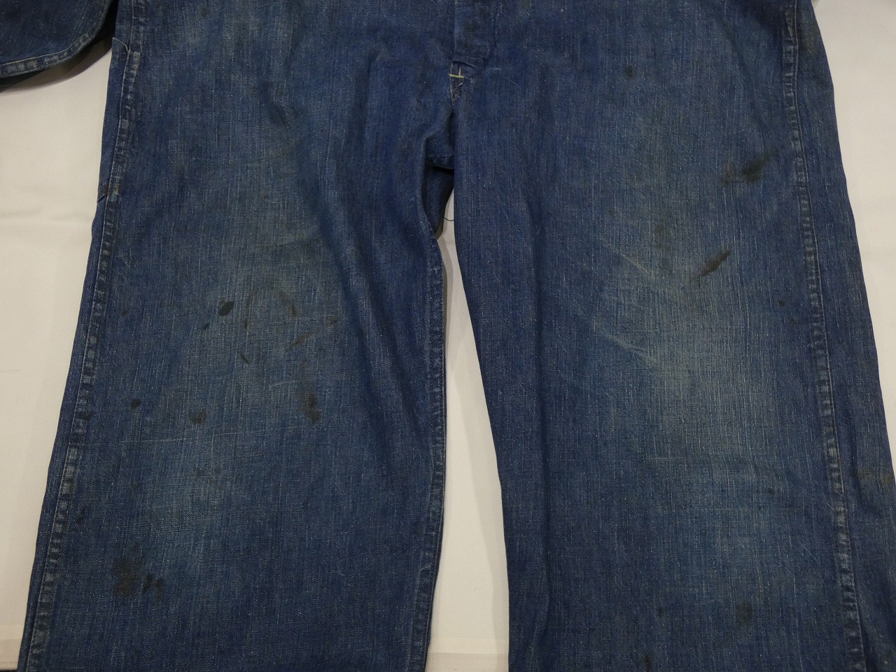 コンディションはやや使用感があり、要所要所に色落ちや所々にオイルヨゴレ、右ポケット下にダメージ、左足に縫製不良、裾などにスレキズなども見られますが、着用に問題は無く、ワークウェアとしてよい雰囲気出してます。