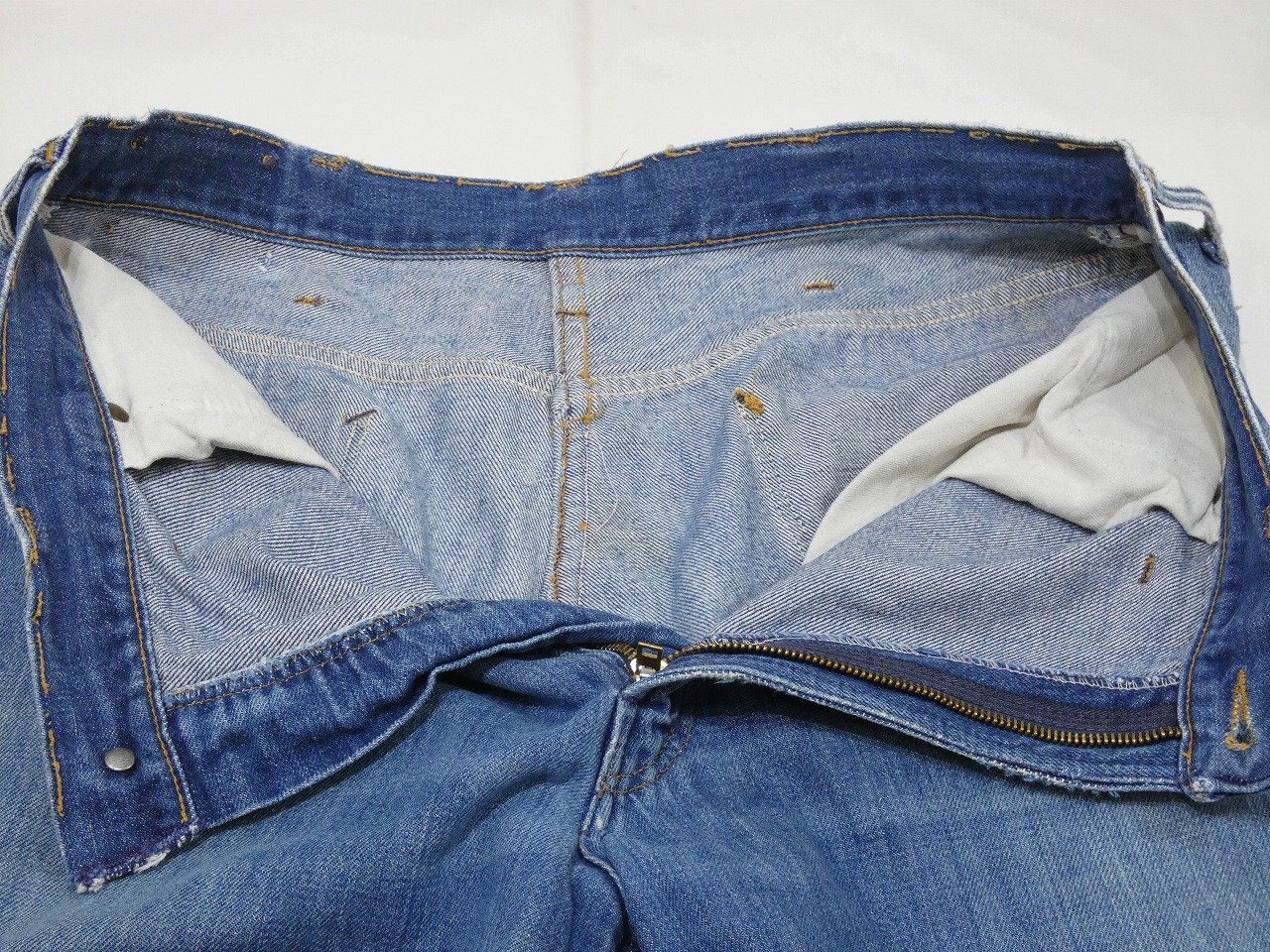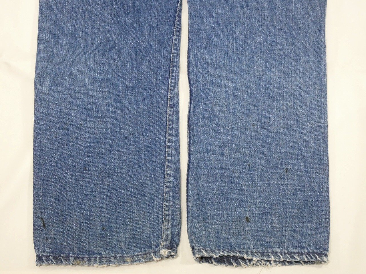 コンディションはやや使用感があり、ウエストステッチホツレ、フロント合わせ部分にスレキズ、両ヒザ辺りにダメージ、両ポケットにステッチホツレやリステッチ、ヒップのセンターステッチにリステッチ、右ヒップ下に小キズ、裾のにスレキズやオイルジミ、その他、所々に薄ヨゴレ等が見られますが、ビンテージ デニムのアジとしてとらえて頂けると思います。