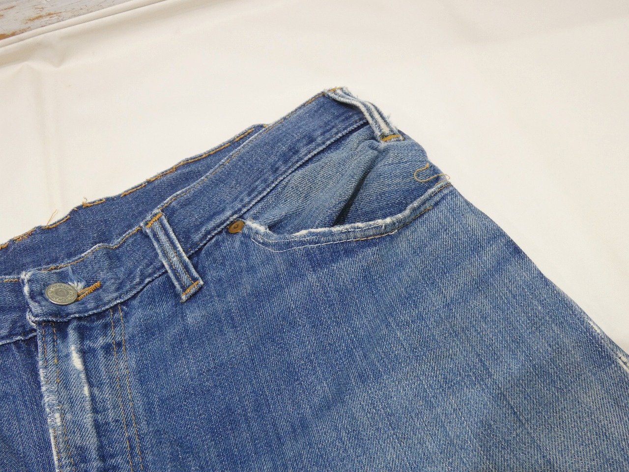 アメリカの3大ストアブランドの1つJC PENNEYのプライベートブランド、RANCHCRAFTのデニムパンツです。ジッパーはタロンのセミオートマチックが付いており、裾は恐らくオリジナルレングスだと思います。リーバイスではBIG Eにあたる年代の物で、メジャー物に比べ、同年代でもこちらは価格もお安く設定しております。近年、世界的にデニムウェアは価格が上昇しており、今後は更に値上がりが予想されます。あまり市場では出てこないストア物のデニムはお探しの方も多いと思います。アジはありますが色落ちも良い感じですので是非、ご検討下さい。