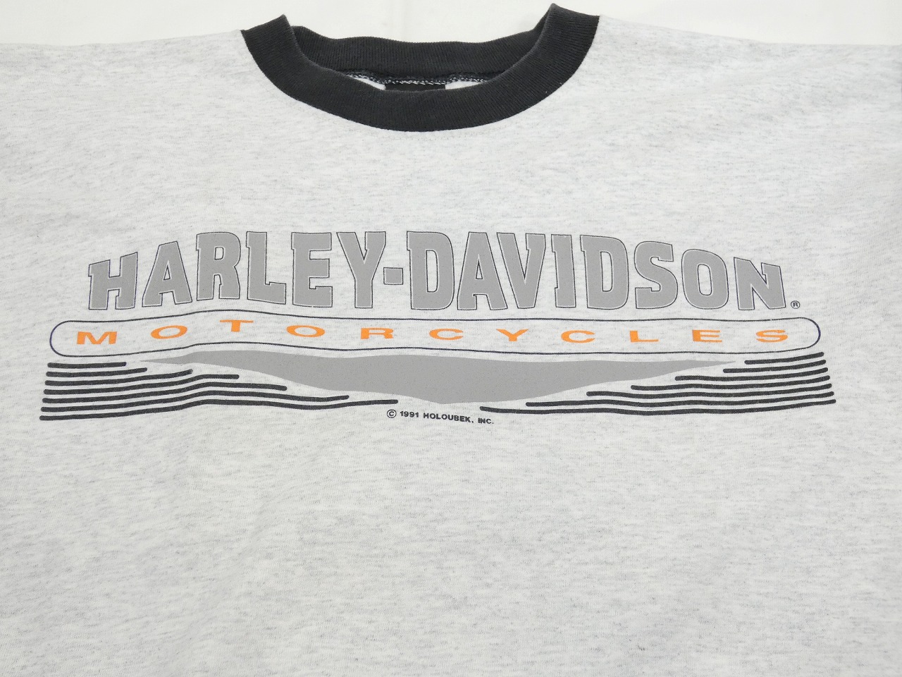 90s HARLEY DAVIDSON OFFICIAL TWO TONE SLEEVE BOTH SIDE PRINT T-SHIRT