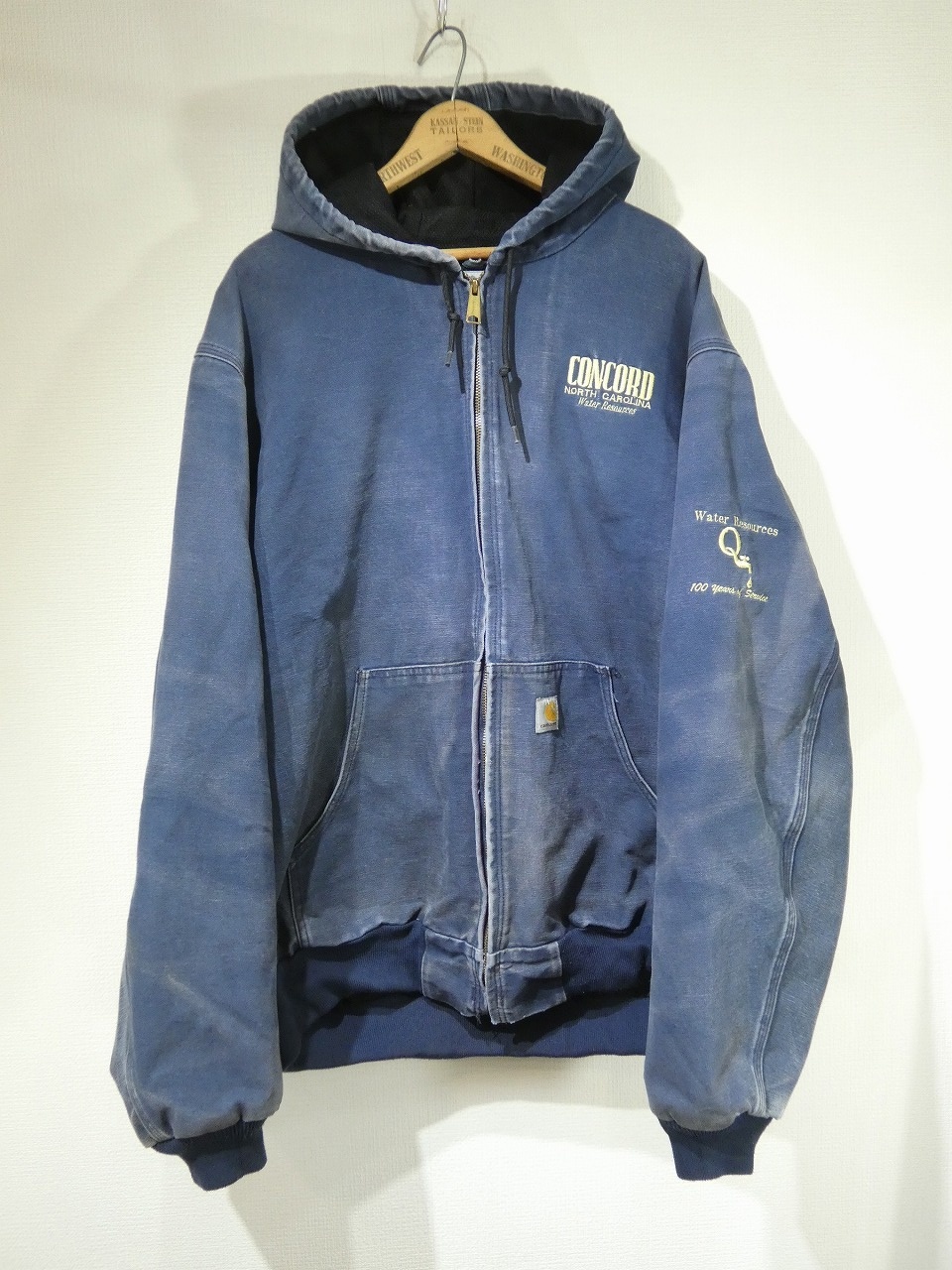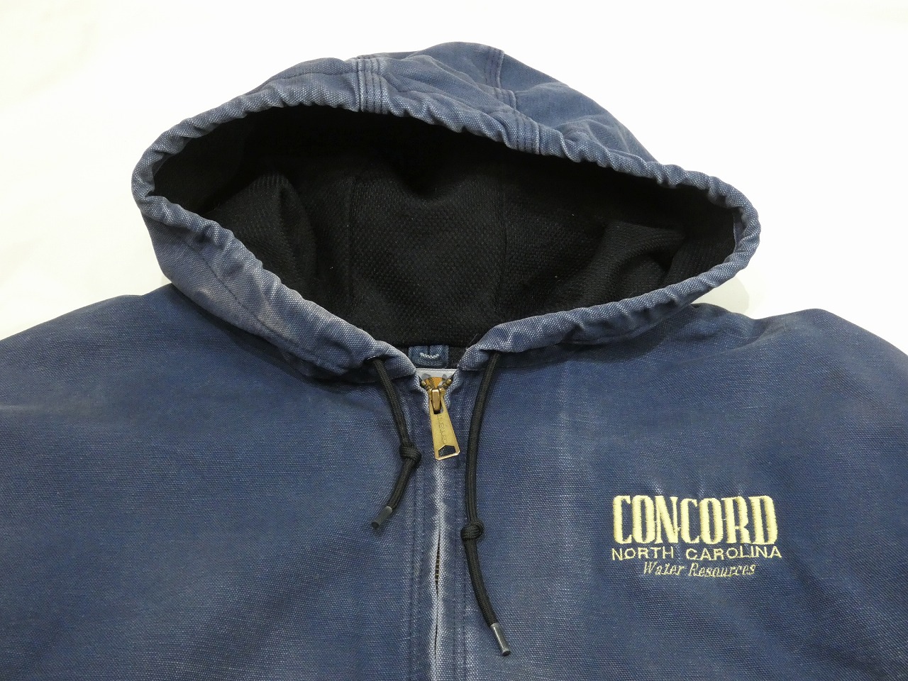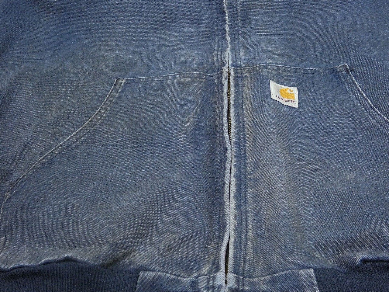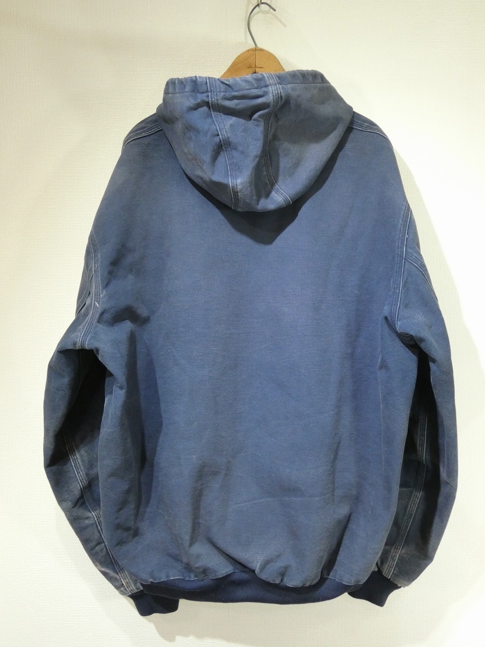 Carharttは日本でもお馴染みのブランドですので、いまさら説明も不要ですが、1889年にミシガン州デトロイトで創業したアメリカを代表する老舗ワークブランドです。そんなこちらは、カーハートの中でも定番人気のアクティブ ジャケットになります。最近ではデトロイトジャケットをお探しの方も多いですが、元祖90sスタイルやHIPHOP等のストリートカルチャーにはこちらのアクティブ ジャケットは外せません。しかもお探しの方の多いカラーNAVYです。全体的にフェードや少しヨゴレなどが見られますが、袖のハチの巣状の色落ちなど最高です。この様な個体は、状態の良い物以上にアメリカでも人気が高く高値で取引されています。また、最近ではこの様なフェードやダメージがすごい物をDistressed styleと言って、それだけを集めたイベント等もある見たいです。まさに1点物になりますのでお探しだった方は是非、ご検討下さい。
