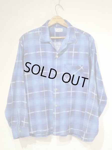 60s CUSTOM TAILORED GRADATION PLAID CHECK OPEN COLLAR PRINT FLANNEL SHIRT