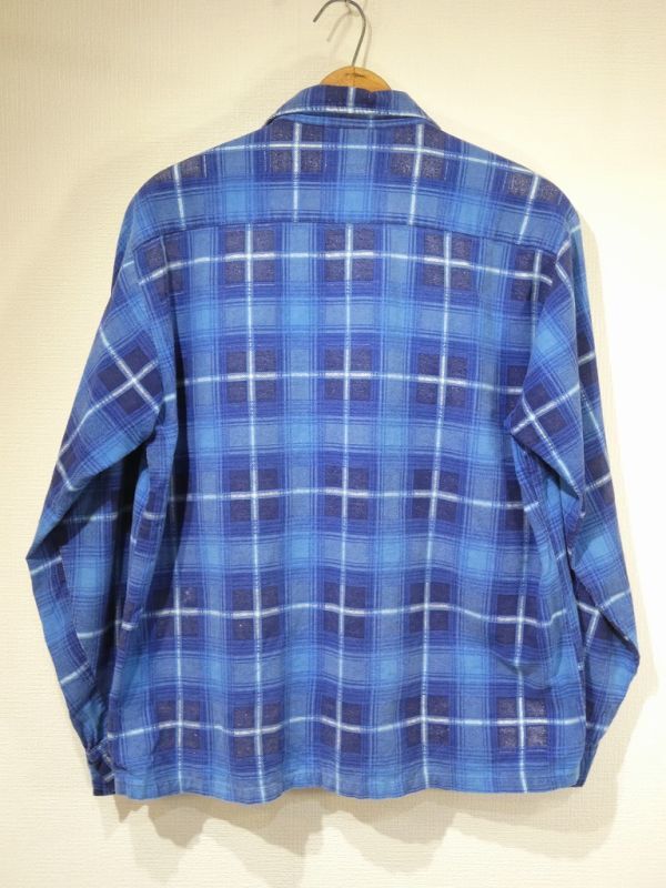 襟はステッチと襟芯が入るオープンカラーで、ブルーベースのグラデーション (オンブレ) プレイド チェックが雰囲気の良い1枚です。通年ご利用頂ける軽い着心地のプリント(ライト)ネルは本当にお勧めです。フェードなどがあり、状態は良いとは言えませんが、グランジや横ノリ系ファッションをお好きな方には良いかと思います。アメリカ本国でもオールドボックスシャツの価格高騰は著しく買付けが難しくなっております。お探しだった方は是非、ご検討下さい。