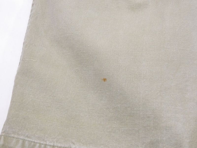 コンディションは多少の使用感があり、フロントボタンの交換、モモやヒップに小さなシミ、左ヒップポケット上に僅かなスレキズ、所々に織りムラ等は見られますが、古いミリタリー物としては状態は良い方だと思います。