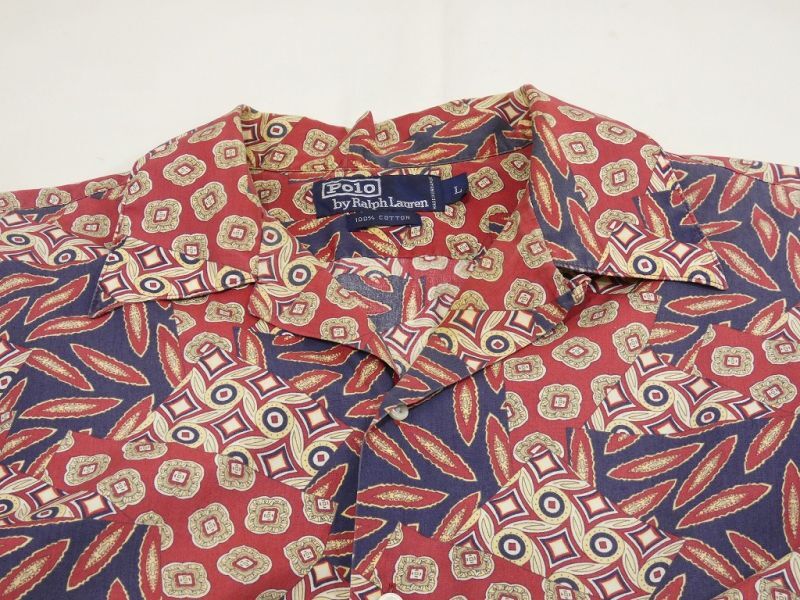 90s Polo Ralph Lauren ALL OVER PATTERN OPEN COLLAR S/S SHIRT