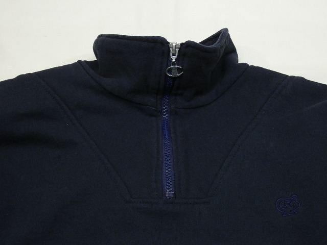 ネイビーボディに胸には同色のワンポイント刺繍、チャンピオンロゴのハーフジップも良い感じです。左袖にもチャンピョンロゴが付き、シンプルな単色デザインに良いアクセントになっています。古い物ではありませんが、あまり見かけないデザインで、珍ピョン好きな方にはたまらないかもしれません。サイズ、状態共に良くお探しだった方は是非、ご検討下さい。