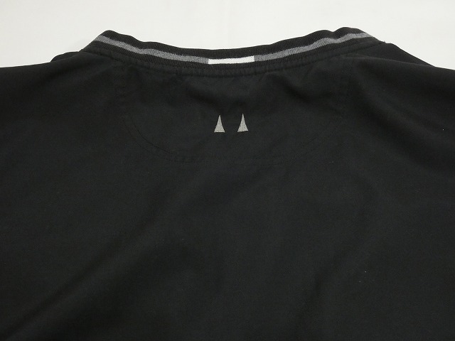 Greg Normanは、30年の歴史を持つゴルフからインスパイアされたスポーツウェアブランドです。ブラックカラーのシンプルなプルオーバージャケットですが、グレラインの入ったVネック襟やフロントサイドに付いたポケットが良いアクセントになっています。背面の上部にも刺繍ロゴがあり、こちらも良い感じです。オーバーサイズでガバット着て頂くと良いと思います。サイズ、状態共に良くお探しだった方は是非、ご検討下さい。アウターにもインナーにも最適なアイテムです。