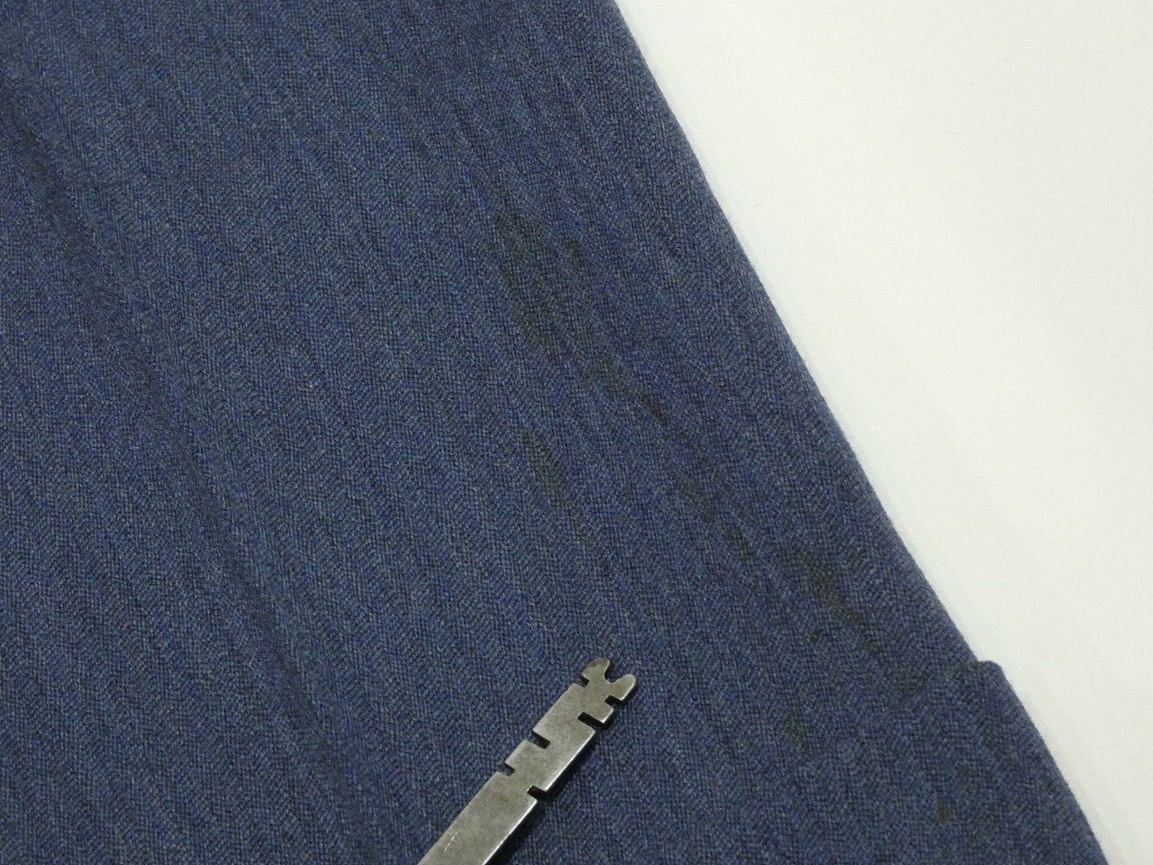 ブランドタグが無いため詳細は不明ですが、厚手のネイビーグレーのウールギャバジン素材で、ジッパーはタロン、スナップはグリッパーが使われています。シルエットもとてもきれいな1本になります。最近では若い方もお探しの方多く感じます。サイズの合う方は是非、ご検討ください。