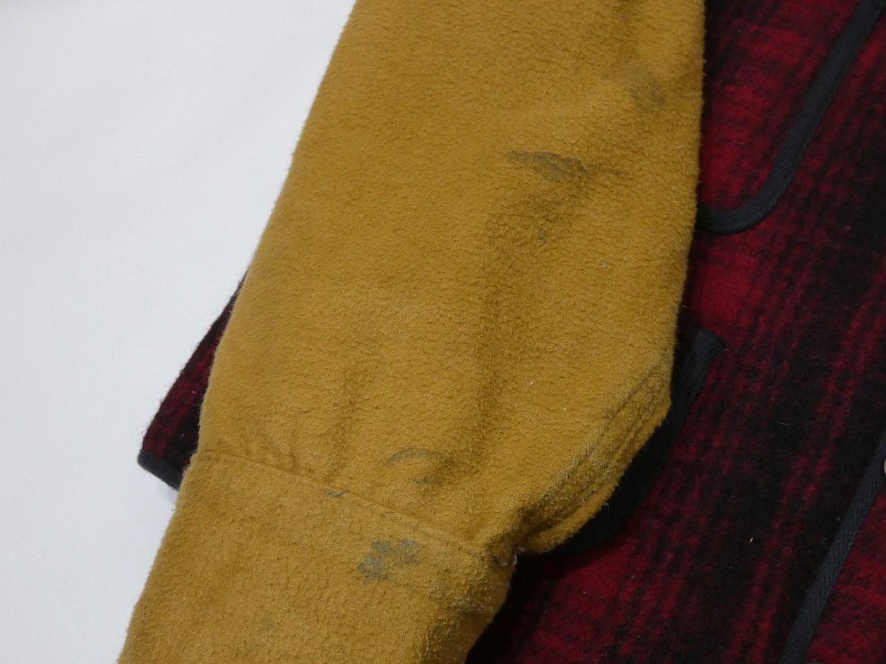 WOOLRICHは1830年ペンシルべニア州で創業の老舗アウトドアブランドで、元々は毛織物工場から始まっています。そんなこちらは、同デザインも存在するベストに袖を付けたジャケットで、ベスト部分はレッド×ブラックのオンブレチェックのウール地、袖はマスタードカラーのシャモアクロスになっています。裏地を含め縁はすべてパイピング処理されていて作りの良さがうかがえます。お好きな方も多いエンジニアジャケットの様なデザインですので、お探しだった方は是非、ご検討下さい。