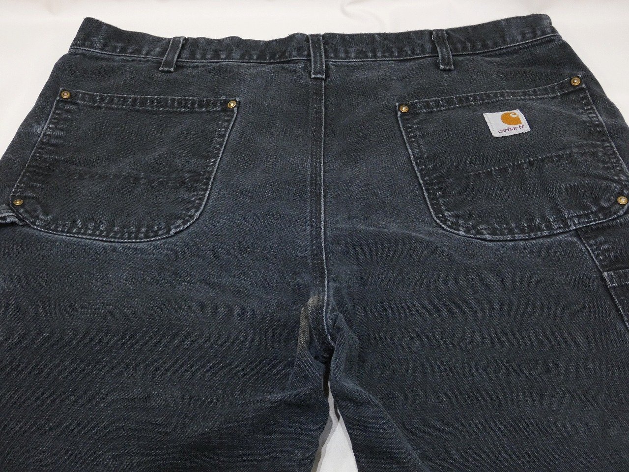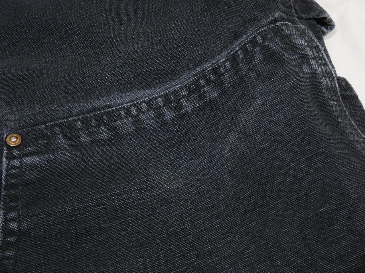 Carharttは日本でもお馴染みのブランドですので、いまさら説明も不要ですが、1889年にミシガン州デトロイトで創業したアメリカを代表する老舗ワークブランドです。そんなこちらは、ブラックが綺麗にフェードした1本で、ヒゲ落ちや腿などに付いたペンキと合わせとても良い雰囲気を出しています。なかなかダメージ無くここまで退色させるのは大変です。アメリカ本国では状態の良い物ももちろん人気ですが、こちらの様な良い雰囲気の物は更に高値で取引されています。お探しだった方は是非、ご検討下さい。