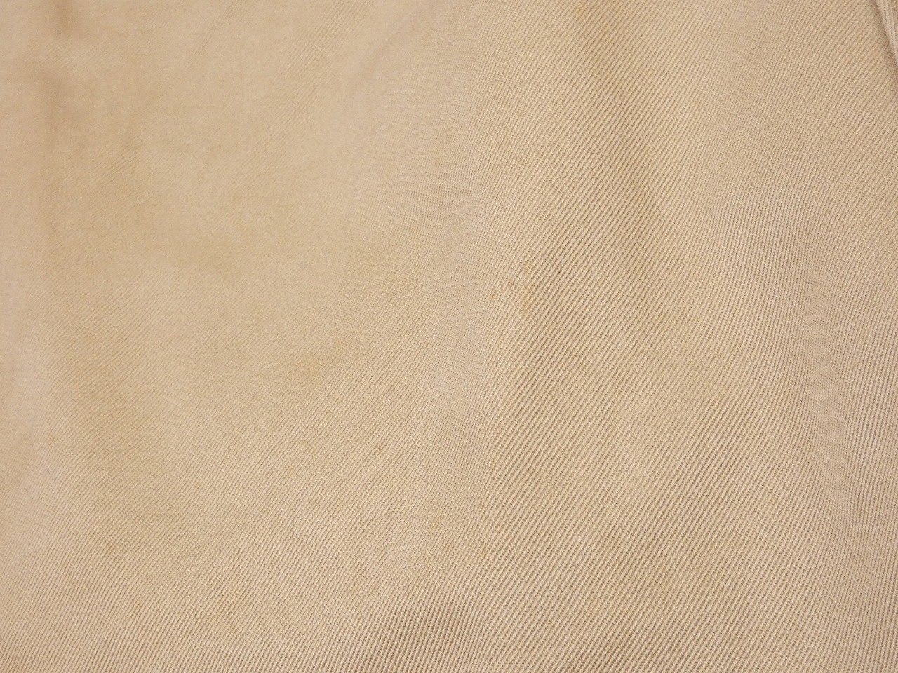 通称45カーキと呼ばれる、第2次世界大戦末期から朝鮮戦争頃のモデルで、スタンプが薄くなっていますが、コントラクターはSOUTHERN MFG COになります。この年代のモデルは尿素ボタン、肩玉縁のコインポケットやヒップポケット、ベルトループが細くウエストに切り返しが無く太めのストレートが大まかな特徴です。最近では本当に出にくくなったオールドミリタリーチノですので、お探しだった方は是非、ご検討下さい。